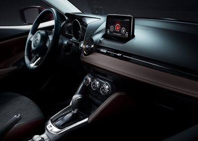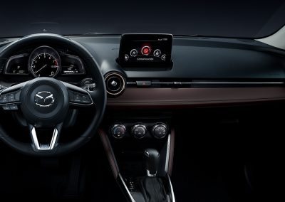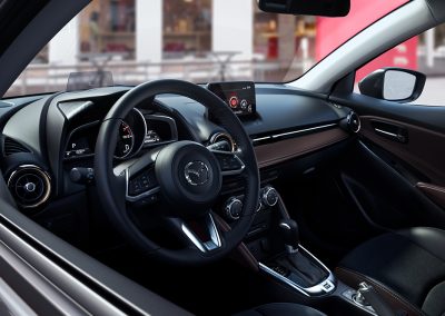 Deportivo en todos sus ángulos. Desde la refinada parrilla delantera, el diseño de los rines, hasta los acabados interiores de alta calidad, Mazda2 sport refleja la auténtica estética japonesa.